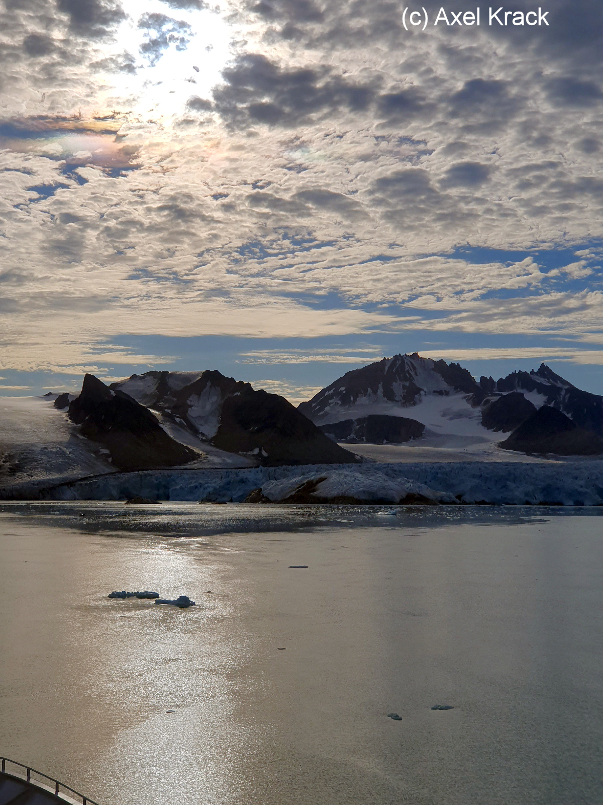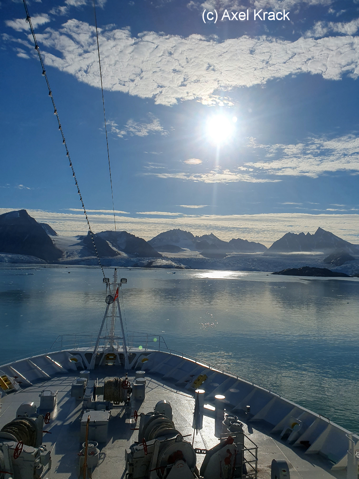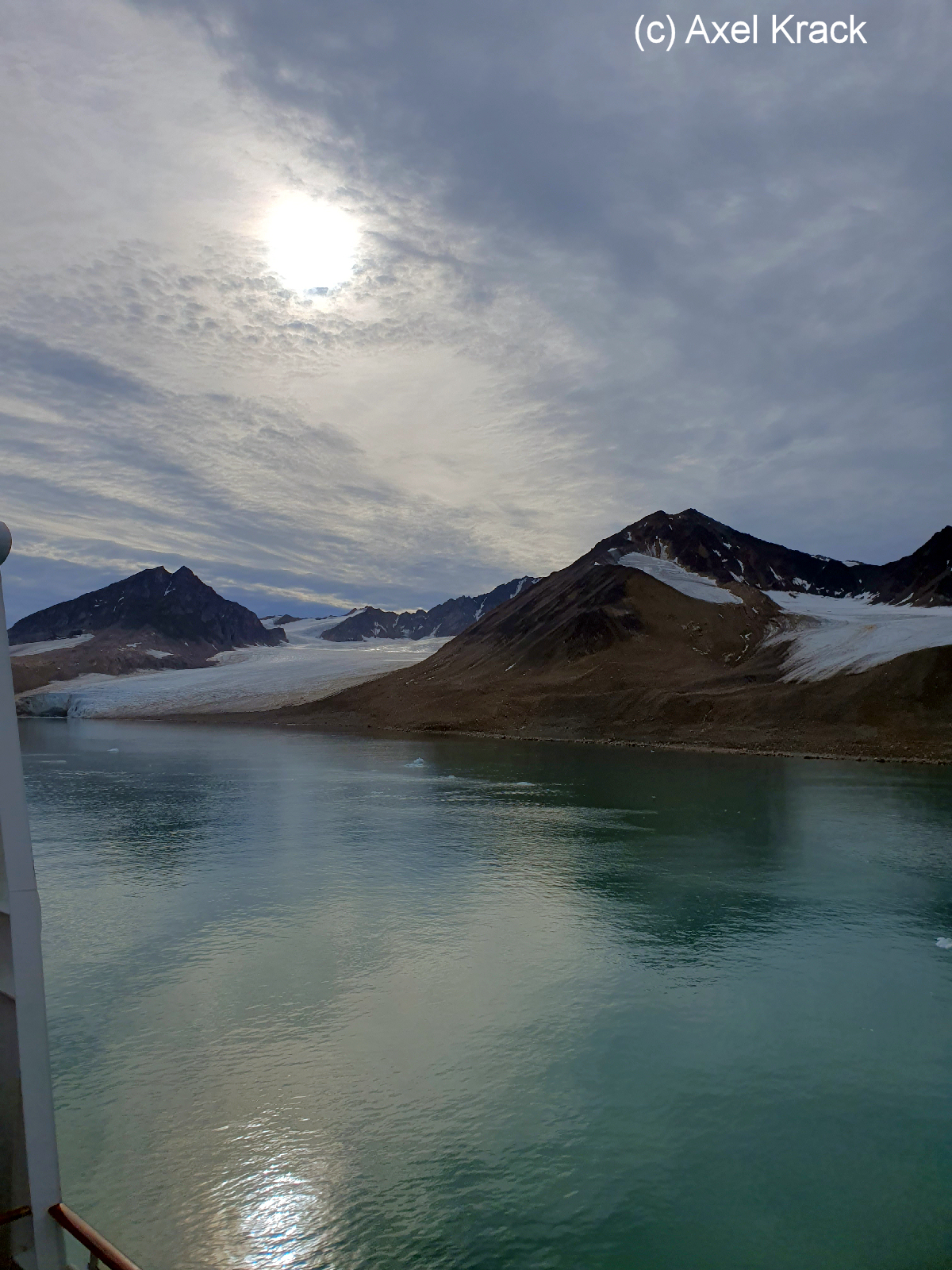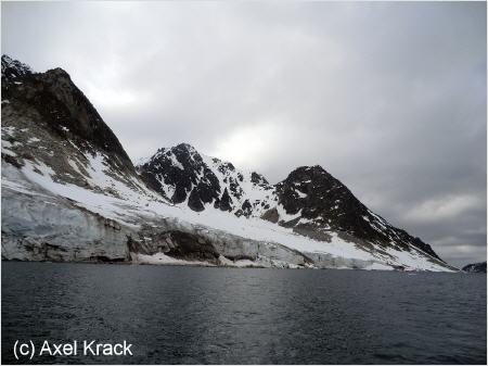 Das gegenüberliegende Ufer der Vasahalføya wird durch zahlreiche kleinere Gletscher markiert. Die am nördlichen Ausgang des Fjordes liegende Insel Amsterdamøya birgt, wie bereits erwähnt, ein dunkles Geheimnis in der Geschichte Spitzbergens. Hier bei Smeerenburg - Fettburg - fand ein großer Teil der damaligen Waljagt statt. Auch heute sind die Überreste der ehemaligen Trankessel für den Besucher noch sichtbar. Auch hier gelten Einschränkungen hinsichtlich der historischen Hinterlassenschaften.